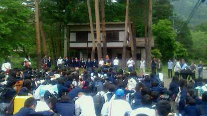 自然体験を終え,全員無事ペンション村に到着しました。入村式の様子です。この後,それぞれのペンションのオーナーさんに案内していただいて,宿舎に行き,各ペンションごとのスケジュールとなります。3つ目の写真は各ペンションのオーナーさんです。本日はお世話になります。よろしくお願いします。みなさんはマナーと規則を守って,お手伝いなどもしっかりして下さいね。夕食後は一切外出禁止となります。仲間同士積もる話もあるかと思いますが,今日は疲れているでしょうから,ゆっくりお風呂に入って早いめに寝ましょう。明日はいよいよTDLです,体調をしっかり整えて楽しめるようにしてください。これ以降は先生方も生徒の宿泊しているペンションには入れません。夜の活動の様子などはお伝えできませんので,本日のレポートはここまでとさせていただきます。