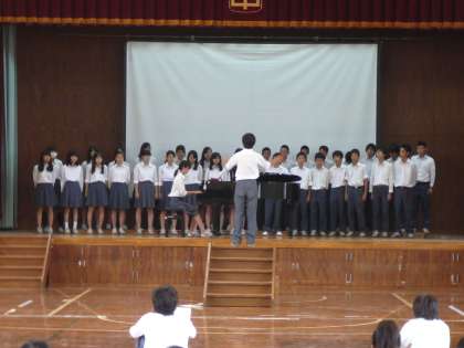 記念式典での校歌斉唱で、しっかり声出しして下さいね!