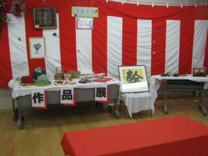 保護者の方々や,地域の方々の,心のこもった「手作り作品」を展示していただいています。ゆっくりご見学いただくとともに,抹茶と和菓子のおもてなしを準備してお待ちしております。南校舎1階大会議室にお越し下さい。開催時間は10:30〜13:30です。