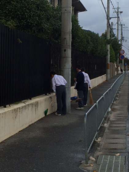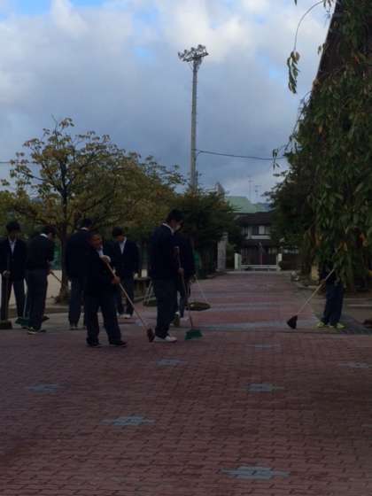 *写真は、野球部が休日明けの早朝に行ってくれている、校門付近の掃除の様子です。今朝は台風一過で落ち葉がたくさんあったのですが、綺麗にしていただきとても助かりました。ありがとうございました。きっとこういう取り組みが、どこかで野球の試合につながる日が来ると信じています。