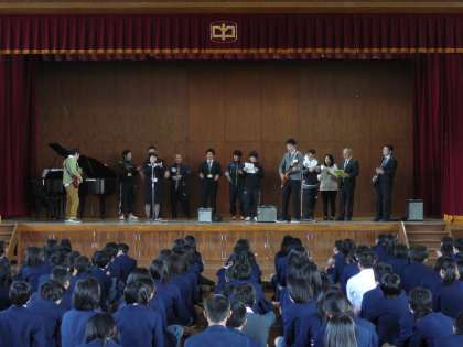 学年集会最後は、やる気120%の先生方のパフォーマンスです。