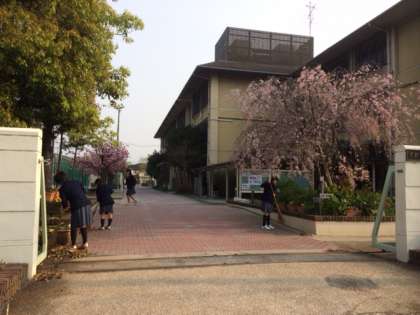 ず〜っと続く雨のため、満開だった南門の枝垂れ桜も花びらが散り始め、インターロックべったり張り付いていました。「今日は久しぶりにいい天気なので、朝から掃き掃除をしようかな」と思っていたのですが、何と校門に行ってみるとすでに掃き掃除をしてくれている人が…。いつも朝から校舎内の廊下や玄関を掃除していくてくれている吹奏楽部員さんです。ありがとうございます。
