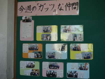 各校舎をまわっていると、1年生の掲示板に早くも「いいところ探し」の1年版「ガッツだぜ!」の掲示物を発見しました。