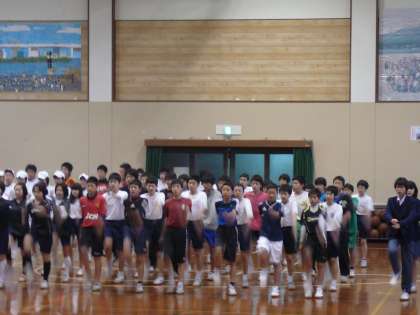 4月29日(祝水)に行われる、春季大会開会式入場行進の練習が、今日から始まりました。体育系部活動代表約100名による入場行進です。