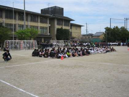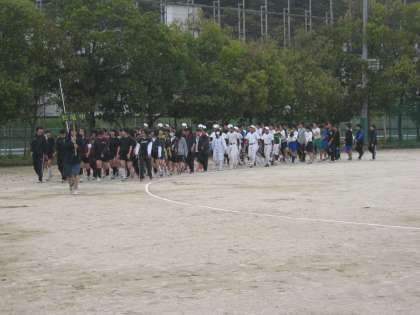昨日はあいにく雨で体育館での練習となりましたが,今日はグラウンドで精一杯練習することができました。吹奏楽部の協力(生演奏)で,行進に出場しない部活動の生徒たちの熱い応援と視線を受けて元気よく行進できました。なんといっても今日は「チーム松尾」の一体感が感じられたのではないでしょうか。通行人の方々も立ち止まって見ておられましたよ。中には朝練習で行進練習をしていた部活動もあったとか・・・頑張った結果が出ていましたね,練習はあと1回しかありません。列の幅,姿勢,手の振り,声,リズムなど今日の課題を克服して素晴らしい行進を見せて下さい。後輩たちが来年はぜひ自分が出場したいと思えるような・・。