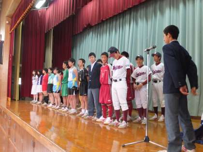最後に,校長先生からは「激励の言葉」と「エール」,生徒会旗を野球部キャプテンに熱き応援の気持ちを込めて手渡されました。