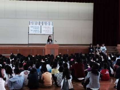 今日は6年生代表4名の発表でした。「憧れられる6年生」になるために、自分の思いや考えをまとめて発表しました。4名の発表者が原稿を見ないできちんと発表し、全校生徒に自分の考えを伝え本当に素晴らしかったです。さらに、聞いている全校生徒の態度がもっと素晴らしかったことが印象的でした。
