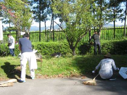 10月3日(土),抜けるような秋晴れの中,作業を行いました。朝夕はずいぶん涼しくなったとはいえ日中はかなり温度も上がり,3時間の除草作業で全身汗びっしょりになりました。