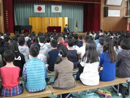 松尾中学校では、前日に学級発表を行い、入学式の作法について練習をします。