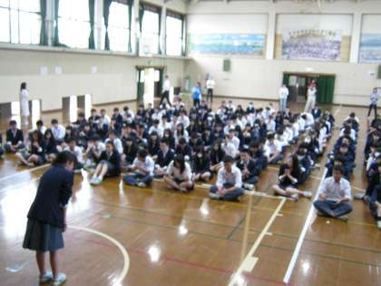 今日の4時間目出発前の結団式を行いました。2泊3日の修学旅行を、本当の意味で楽しく大成功させるためには、自分はどう行動しなければならないかをよ〜く考え、行動で示して下さい。誰一人嫌な思いや怪我等がなく、無事京都に帰りましょう。実行委員長の話の最後に、「修学旅行に行けるのは家族のおかげだから、家族に感謝の気持ちを持って出かけましょう」という言葉がありました。大事なことですね。 明日の朝がとっても早い(7時集合)ですが、最初が肝心ですよ!! 忘れ物がないよう遅刻しないよう集合して下さい。待っています。