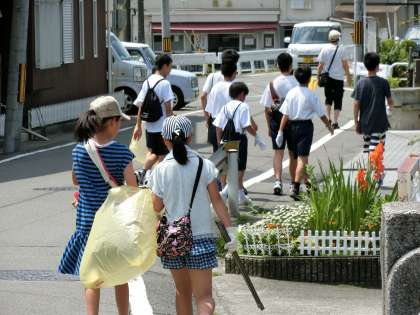 真夏を思わせる強い日差しの中、松尾少年補導委員会主催の恒例,「親と子のクリーン作戦」が本日行われました。