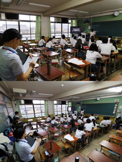 2年生の英語は分割授業です。クラスを半分に分けて別々に授業を受けます。