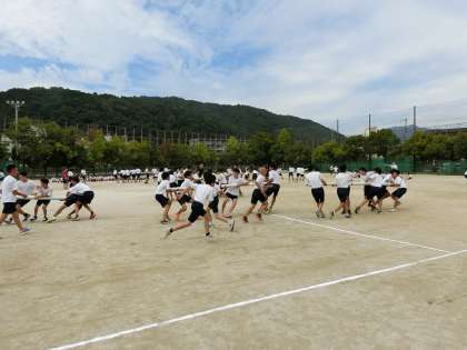 9月16日(金)3限、2年生は体育祭の学年種目(棒引き)練習をしました。あくまでも練習のつもりでしたが、みんな真剣モード、さすが「本気で、本気で」を学年目標とする2年生ですね。男子も凄い迫力でしたが、女子も負けていませんね。本番はもっと盛り上がるでしょう。入り混じっての接触プレーもでてきます。くれぐれもけがや事故の無いようにね!!