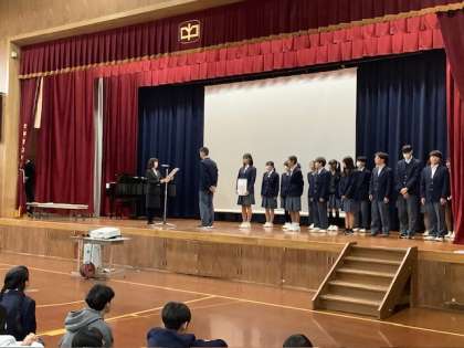 生徒の伴奏による校歌斉唱に始まり、