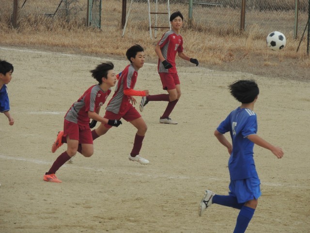 高円宮杯JFAU-15サッカーリ-グに挑んでいるサッカー部。24日(土)の会場は精華南中学校でした。寒風の中、懸命にボールを追いかけましたが、ゴールは遠かった。まだ試合は続きます。見えた課題を修正し、次戦もチーム一丸となり頑張ってください。