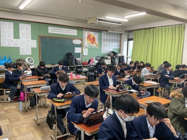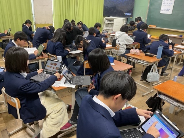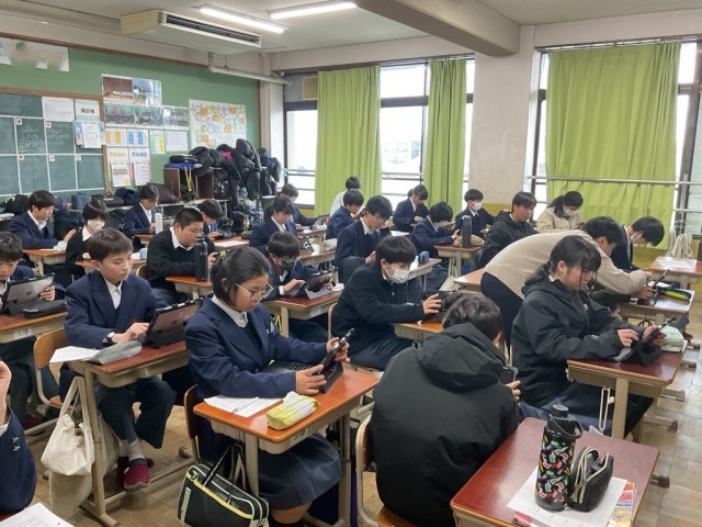 地域の課題について探究したことをCMにしています。iMovieを活用しますが、長けている人は引っ張りだこです。この後、発表です。
