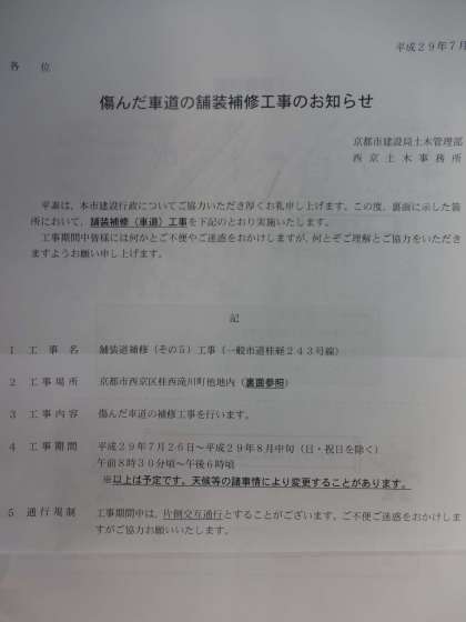 西京土木事務所から連絡がありましたので,確認に頂き,通行に注意してください。