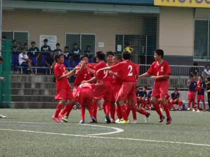 後半もドンドン時間が経過,ゴールキーパーも攻撃に参加して,全員が「なんとか1点を」と諦めない思いがつながったのか,終了間際に同点に追いつく。延長戦になっても追いついた勢いのまま,延長後半に決勝ゴール決めた。桂川ベンチ・応援スタンドはもちろん,グランド全体が響めいていました。