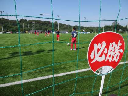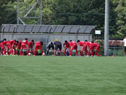 昨日まで,京都市内のサッカー部顧問の先生や関係の方々から多くの励ましを受けたこともあり,試合前の練習から気合いが入っていました。応援には保護者の方の手作りうちわを準備して頂き,応援側も気合い十分でした。