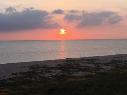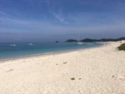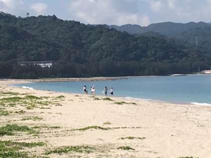 朝の様子です。砂浜で貝殻拾いをしている生徒もいました。現在,快晴で暑いようです。