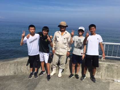 海岸沿いで活動している生徒たちの民家の方との記念撮影です。