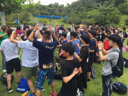 退村式の様子です。最後に沖縄の踊りを教えていただき,一緒に踊りました。