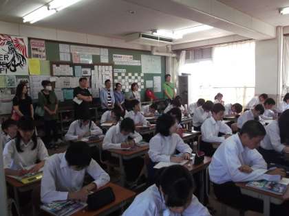 2時間目になり、参観される保護者が、うんと増えました。参観スペースの狭い中、多くの保護者の方々に教室の中で参観していただいています。ありがとうございます。学級の掲示板に生徒たちの決意や行事の振り返りなどを掲示しています。そちらのほうもご覧ください。子どもたちの学校生活の一端をお伝えできると思います。