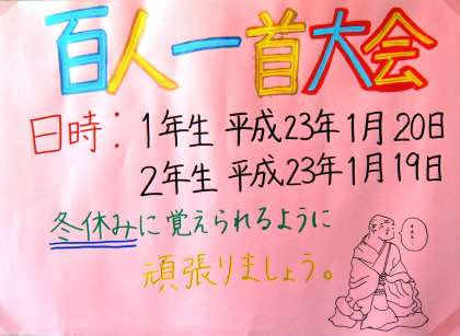 明日は1年生の百人一首大会を実施します。