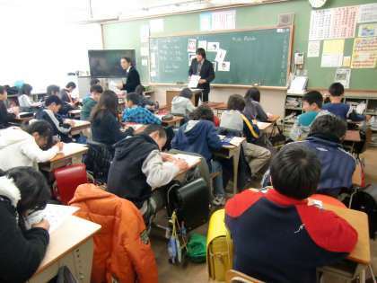 川岡小学校は、1組:国語,2組:英語,3組数学の授業です。だんだん乗ってきましたね!