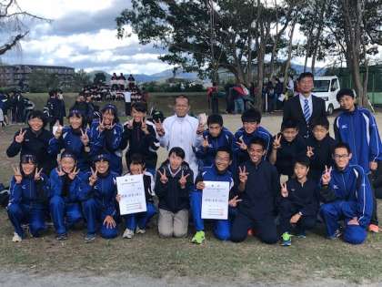 10月20日(土)嵐山東公園周回コースで京都市中学校駅伝競走大会が開催され、男女とも5位に入賞し、府大会への出場を決めました。おめでとう。自分の走りに満足している選手は少ないと思いますが、府大会までの3週間、しっかり調整してください。練習の前には必ず掃除をするなど、普段の心がけや行動が、こうした結果に結びつくのだと思います。この日の試合前もコースの石拾いをする生徒の姿を見て嬉しくなりました。試合に出場した選手だけでなく、みんなで掴み取った府大会出場です。