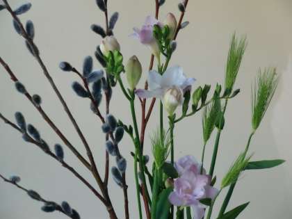 《今週の生け花》ネコヤナギ,フリージャ,ムギ 3月7日(月)〜