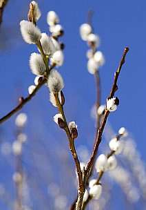 自然の状態では、2〜3月に川沿いの湿気のある場所に生えています。ヤナギ類では最初に咲くのがこのネコヤナギです。ネコヤナギの木は折れにくく強靭です。明治の小説などに、よく”ヤナギゴウリ”という入れ物が出てきますが、このような強さに着目して昔は柳類(中国原産のこり柳)を利用していました。樹高2mまでの落葉低木で、 枝を伸ばして株立しています。