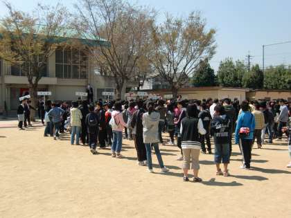 明日入学する新入生に登校してもらい、明日の入学式ヘ向けて、クラス発表と式のリハーサルを行いました。