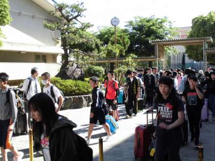 おはようございます。3年生は,本日23日(木)から25日(土)まで3日間の修学旅行に沖縄へ出発します。みんなこれからの期待感で元気いっぱいです。