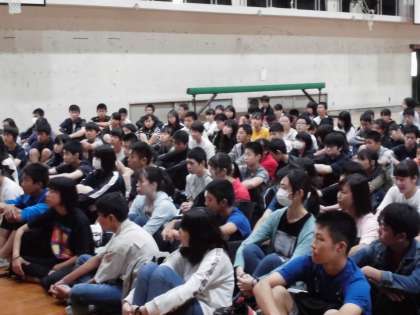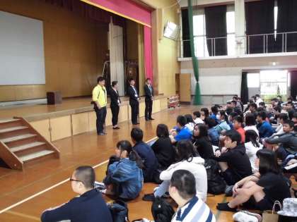 出発式の様子です。校長先生,生徒代表の挨拶,お世話になる添乗員さんとカメラマンの方の紹介がありました。