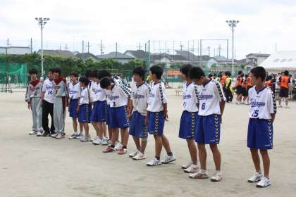 5月7日(土)に久世中学校で、ハンドボールの決勝トーナメントが開催されました。桂川中は男女とも出場です。男子は四条中との準々決勝に挑みました。最初はやや硬さが見られ、相手に先に得点を挙げられてしまします。同点になるかと思えばまた離されて・・・という展開で、なかなか追いつけません。前半が終了した時点では9−11で2点差です。後半も相手が先手を取り、それを追いかける展開です。最大で5点差がついてしまいました。しかしそこから底力を発揮し、差を縮めます。でも得点できるところでゴールを決められず、終盤にミスが出てしまいました。終わってみれば19−20と1点差です!「あの時決めておけば・・・」という悔いの残る試合でした。あと1点、1点の重みを感じた試合でした。今回の経験を胸に刻んで、悔しさをバネとして、今日からの練習に頑張って欲しいと思います。目標は夏季大会です!がんばれ!