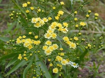 ソリダスターはキク科の植物で、「ソリダゴ」と「アスター」の2種類の交配種で、原産地は北半球です。春と秋に植え込み、6〜7月と9〜10月に開花します。河原によく咲いている「アキノキリン草」の仲間です。鮮明な黄色の小さな集団花を咲かせ、強健な植物で、暑さ、寒さに強く、株分けで増やします。花言葉は「振り向いてください」です。