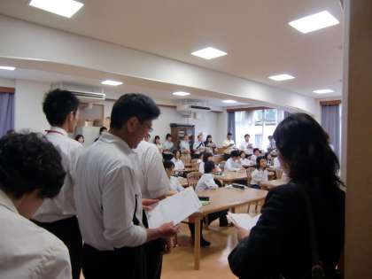 昨日6月7日(火)午後1時50分〜5時00分の間、西京区内の中学校8校の先生が全員参加して「西京支部研究授業&研究協議会」が行われました。桂川中では、1年3組の分割授業(18名)で英語科の研究授業が行われました。各学校から40名上の先生が来校され、生徒たちはやや緊張の思い出授業を受けました。授業後には、「生徒一人一人の学力向上に向けて」のテーマで研究協議を行いました。今回の成果を各校での教育実践に生かしていきたいと思います。