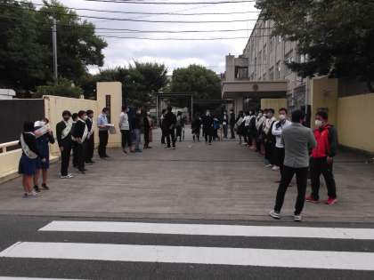 10月12日,選挙告示が行われ,17名が立候補しました。今日から,選挙運動が開始です。朝から,立候補者が自分に投票してもらえるよう,呼びかけが始まりました。