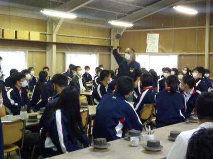 制作の説明が始まりました。窓が全開で少し寒いようです。