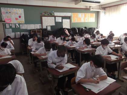本日1限から5限,3学年とも「学習確認プログラム」に取り組んでいます。最後の一分一秒まで全力を尽くしてください。テストまでの日々の取り組み以上に,結果が返ってきてからの振り返りが大切です。