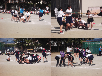 3年生も密を避け,男女別対抗戦としています。「せーの」声を掛け合い跳んでいる姿,女子の競技を応援する男子の姿。学級・学年のまとまりが伝わってきます。