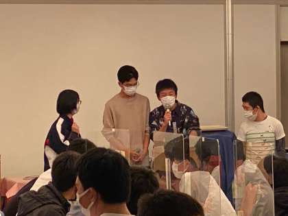 昨日の学年親睦レクの様子です。ダンスあり,クイズあり,お笑い動画あり,ショートコントありだったそうです。クラスごとに出し物をしました。