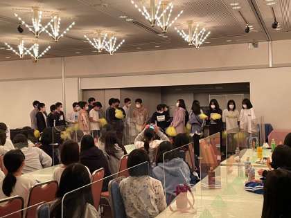 レクの様子です。ポンポンを使ってダンスかな。