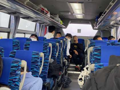 バス内の様子です。やはり寝てますね。でも,ナガシマスパーランドが見えてきました。