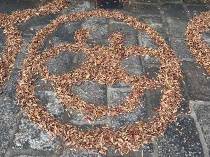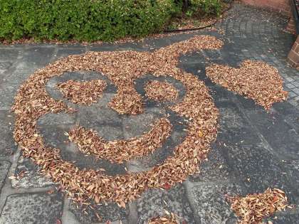 「ナガシマスパーランドにはアンパンマンミュージアムが併設されていて,アンパンマン関連のグッズや広場もあります。これは落ち葉アート…?」だそうです。
