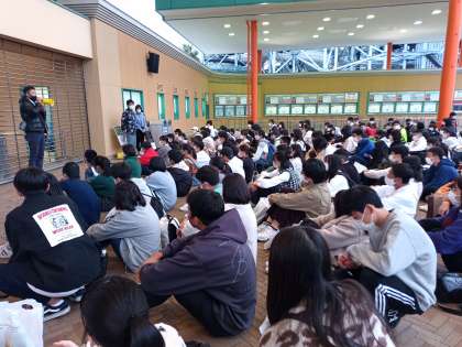 解団式の様子です。これが終われば,バスに乗り込み,一路,京都へ。