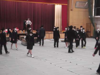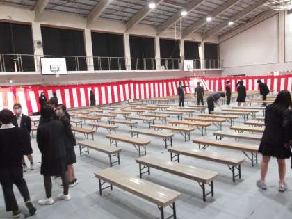 学活後,生徒たちは,明日の入学式に向けての準備に取り組みました。各分担に分かれて,手際よくみんなで協力して準備を進めてくれました。本当にありがとうございました。