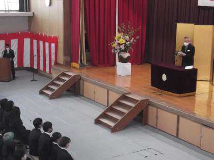 本日7日(木)午前10時より本校体育館で令和4年度第44回入学式が挙行されました。たくさんの保護者の方々に参列していただき,本当にありがとうございました。クラスごとに新入生187名が堂々と入場してくれました。素晴らしかったです。その後,校長先生からは「中学生活での学習や活動に積極的に参加し,何事にもチャレンジしてほしいこと」「うれしさを表現できる人になってほしいこと」が話されました。