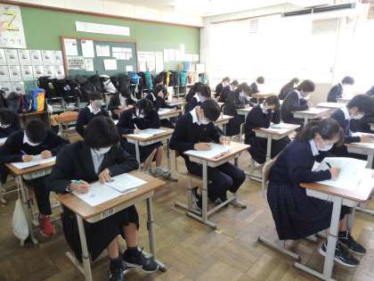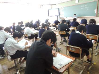 本日10日(火),3年では学習確認プログラムが行われました。学習確認プログラムは,中学校での学習内容がどれだけ定着しているのかをテスト形式で確認する,重要な取組です。自分の弱点を知り,克服するための具体的な手立てを見つけることができます。それだけに,3年生の皆さんの真剣さがうかがえます。最後まであきらめず,全力で頑張ってください!